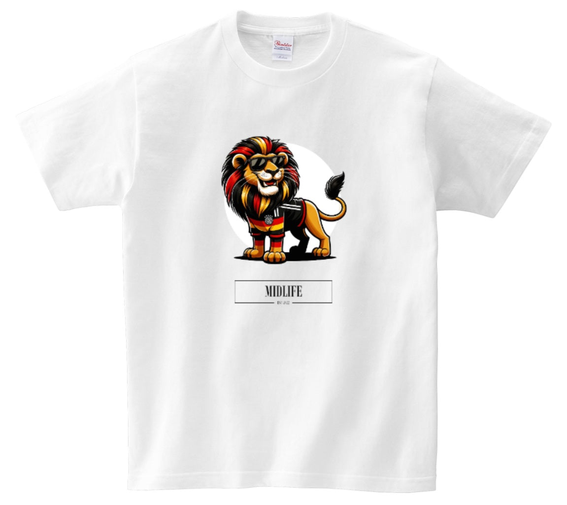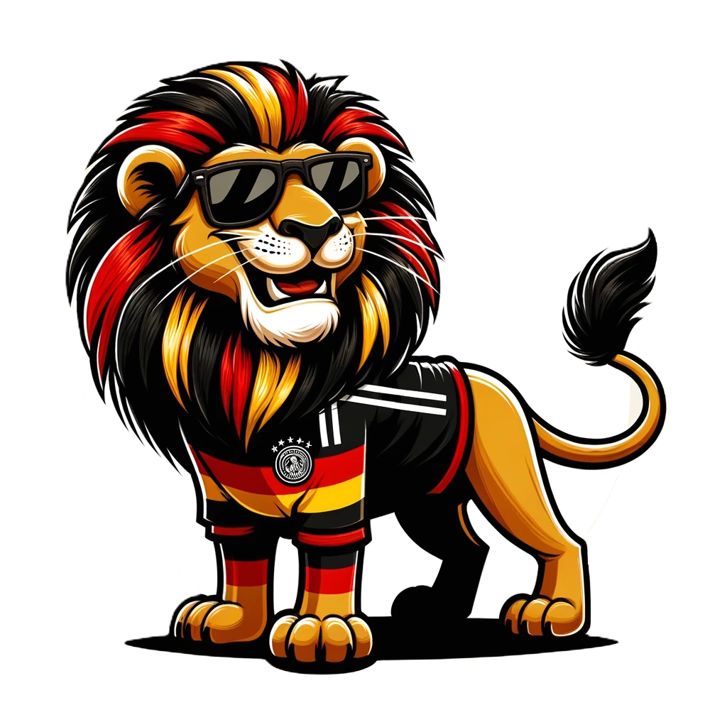 Stolz, stark und stylisch – dieser Löwe ist der inoffizielle Kapitän der deutschen Fanherzen! Mit seiner lässigen Sonnenbrille, dem majestätisch gefärbten Mähne in Schwarz-Rot-Gold und dem DFB-Trikot ist dieses Shirt ein absolutes Muss für jeden Fußballfan mit Stil.
