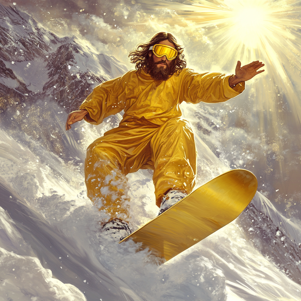 Wenn der Berg ruft und der Himmel strahlt, kommt „Bernd“ – der stylischste Snowboarder der Alpen. In goldenem Gewand, mit Sonnenbrille und göttlichem Flow gleitet er über die Hänge wie ein Wunder auf Powder. Dieses Shirt ist ein Statement: für alle, die Berge, Boards und einen Hauch Ironie lieben.
