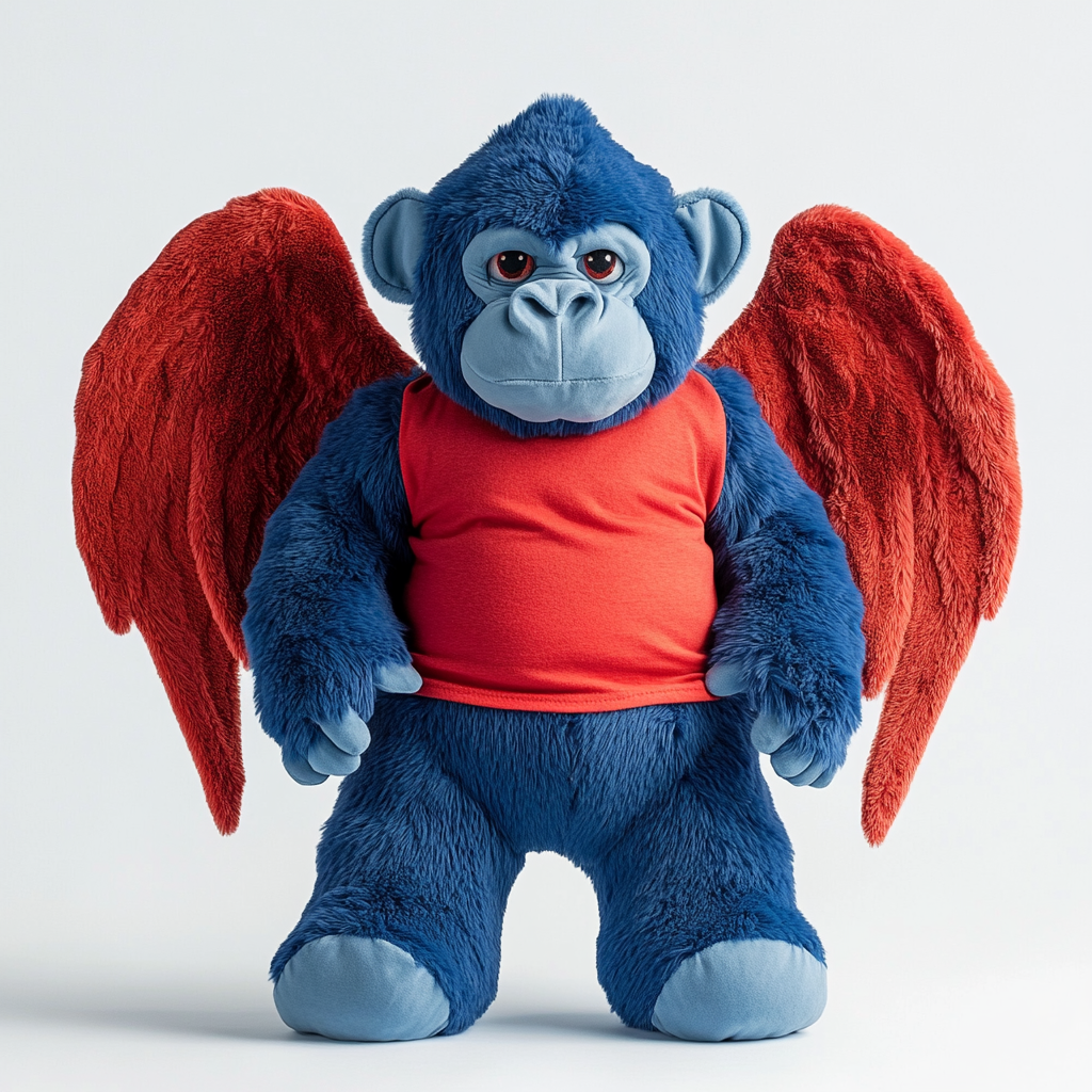 Bereit für ein echtes Statement-Piece? Dieses T-Shirt bringt dir einen heldenhaften Gorilla mit kräftig blauen Fell, leuchtend roten Flügeln und cooler Attitüde direkt auf die Brust. In seinem knalligen Tanktop wirkt er wie ein Beschützer aus einem Comic-Universum – stark, wild und absolut liebenswert.
