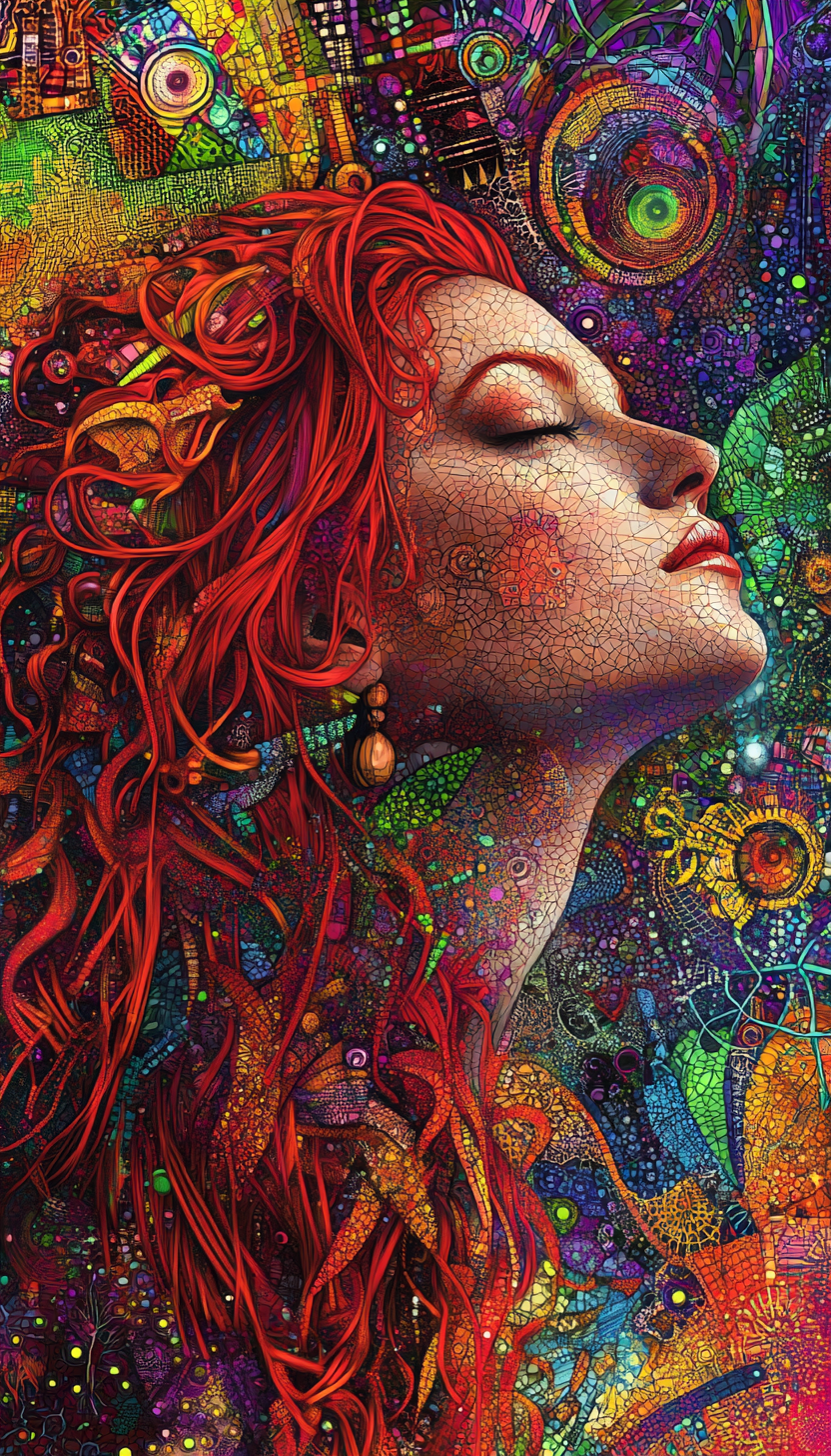 Ein Kunstwerk zum Anziehen: „Judith“ steht für kreative Freiheit, emotionale Tiefe und leuchtende Stärke. Umhüllt von einem faszinierenden Mosaik aus Farben, Mustern und Formen, vereint dieses Motiv weibliche Intuition mit psychedelischer Kunst und bringt deine innere Vision direkt auf die Brust.