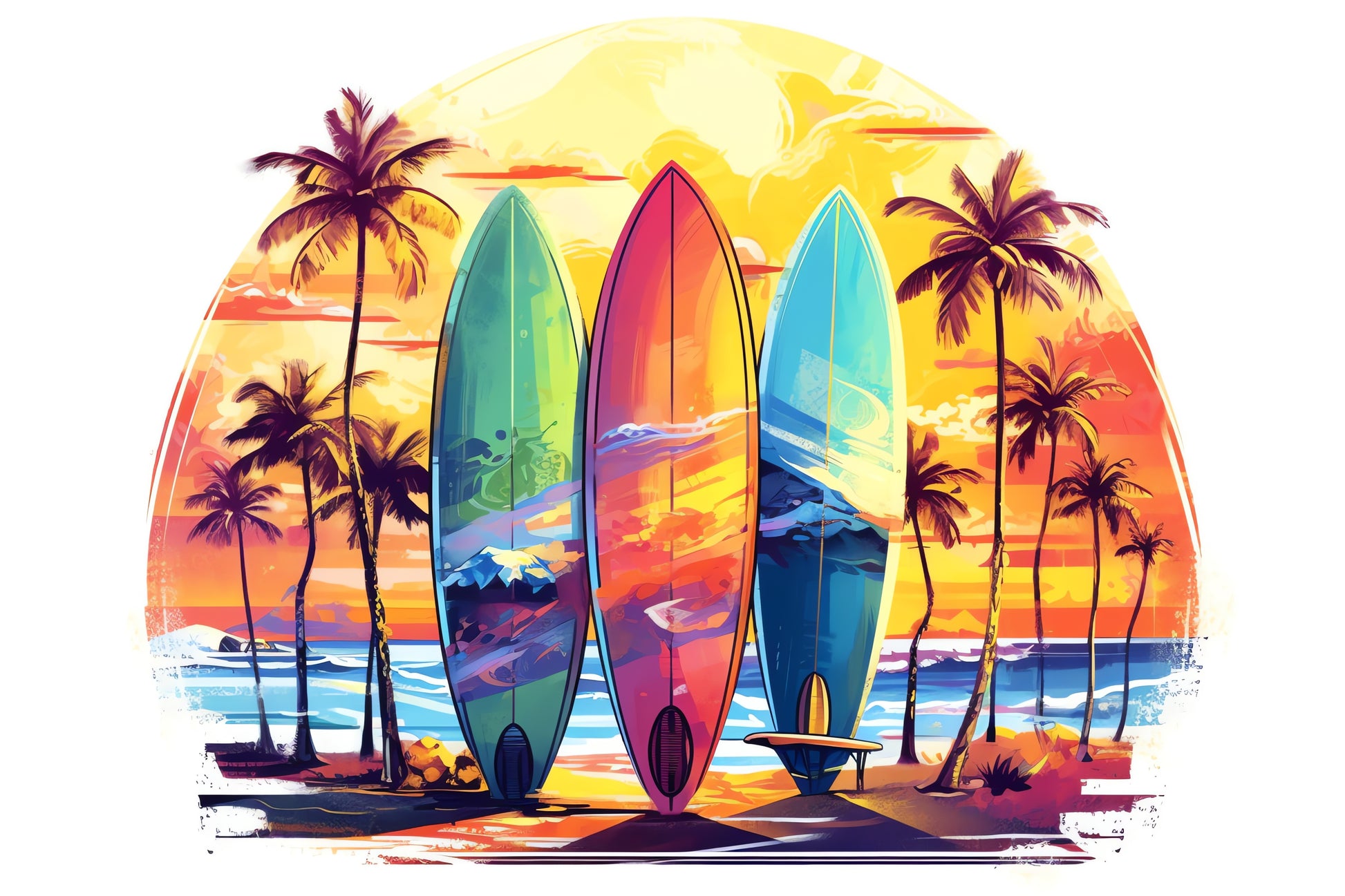 Dieses T-Shirt bringt das Gefühl endloser Sommertage direkt auf deine Brust! Das „Juliette“ Design zeigt drei bunte Surfbretter vor einem traumhaften Sonnenuntergang, eingerahmt von Palmen und Meeresrauschen – perfekt für alle, die den Ozean lieben und den Beach-Style leben.