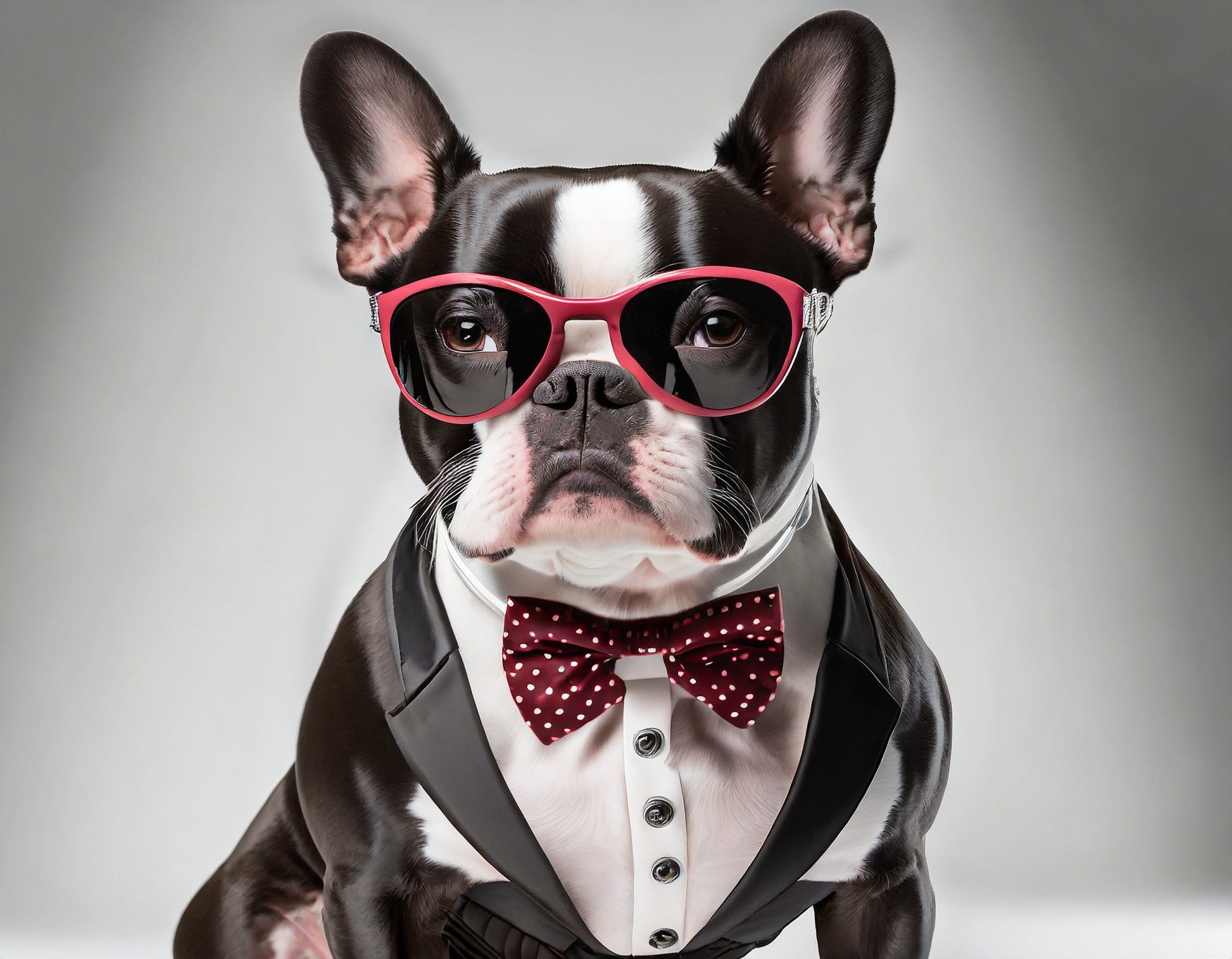 Verleihe deinem Outfit einen einzigartigen Look mit diesem charmanten T-Shirt! Das Design zeigt einen stilvoll gekleideten Boston Terrier mit roten Sonnenbrillen und einer schicken Fliege im Polka-Dot-Muster – ein echter Hingucker für Tierfreunde und Fashion-Liebhaber gleichermaßen.