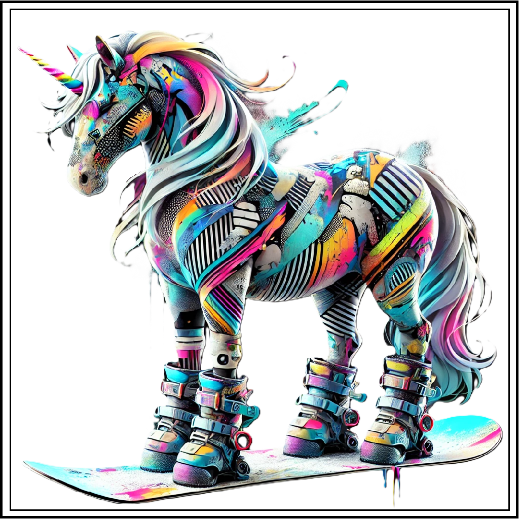 ✔ Street-Art-Unicorn mit Snowboard & Boots
