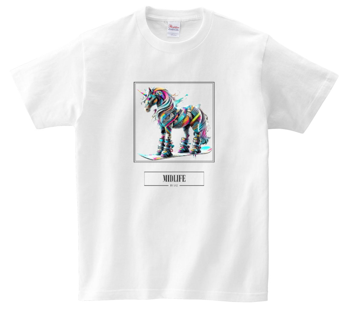 Unser T-Shirt „Snowicorn“ zeigt ein episches Einhorn im urbanen Graffiti-Stil – komplett mit Snowboard-Boots und Board! Dieses bunte Fabelwesen verbindet Fantasie, Action und Street Art zu einem stylischen Statement für alle, die anders sind und stolz darauf.