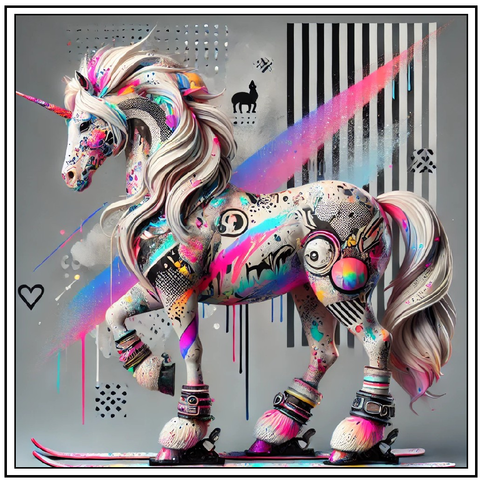 Urban Art trifft auf Fantasie – „Rebecca“ ist nicht einfach nur ein Einhorn, sie ist ein wandelndes Kunstwerk! Mit explosiven Farben, Streetart-Vibes und jeder Menge Attitude galoppiert sie direkt aus der Spraydose auf dein Shirt.