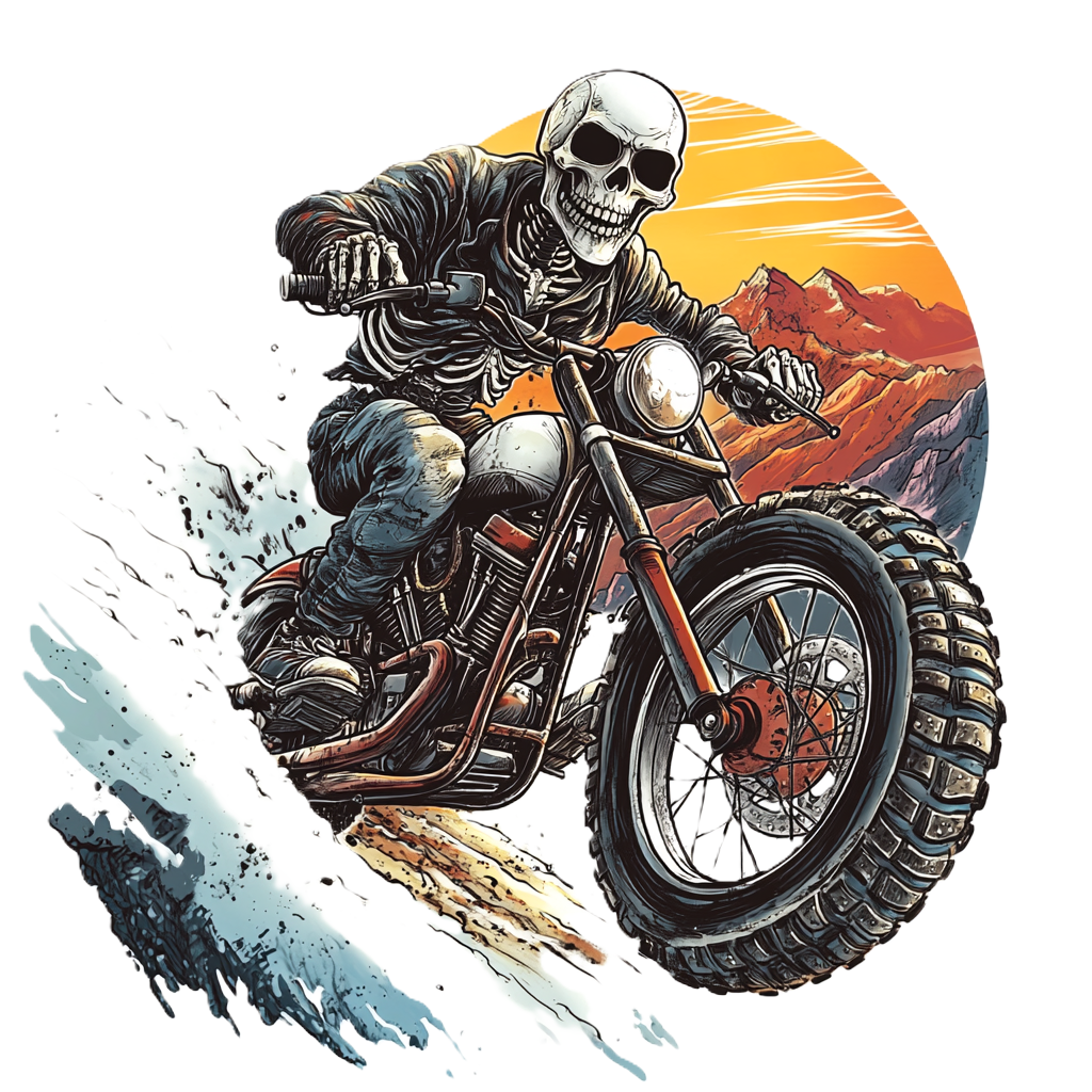 Für alle, die mit Vollgas durchs Leben (oder darüber hinaus) fahren! Dieses epische T-Shirt zeigt einen skelettierten Biker in Action – mitten durch Wüstenstaub und Sonnenuntergang. Ein echtes Statement für Freiheit, Rebellion und die unsterbliche Liebe zum Motorradfahren.