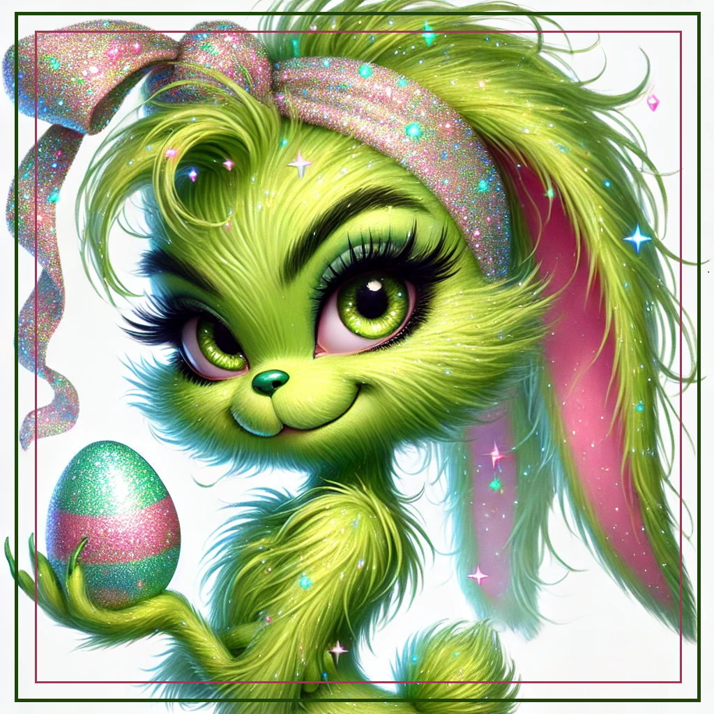 Dieses T-Shirt bringt dir die süßeste Style-Revolution des Frühlings direkt in den Kleiderschrank! Der flauschige, grüne Glitzerhase mit XL-Augen, Glitzerschleife und funkelndem Osterei ist ein echtes Highlight für alle, die Fashion mit einem Augenzwinkern lieben.